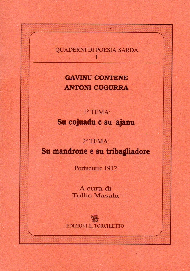 1. tema: Su cojuadu e su ‘ajanu ; 2. tema: Su mandrone e su tribagliadore / Gavinu Contene, Antoni Cugurra ; [a cura di Tullio Masala] Pubblicazione Ozieri : Il torchietto, stampa 1992