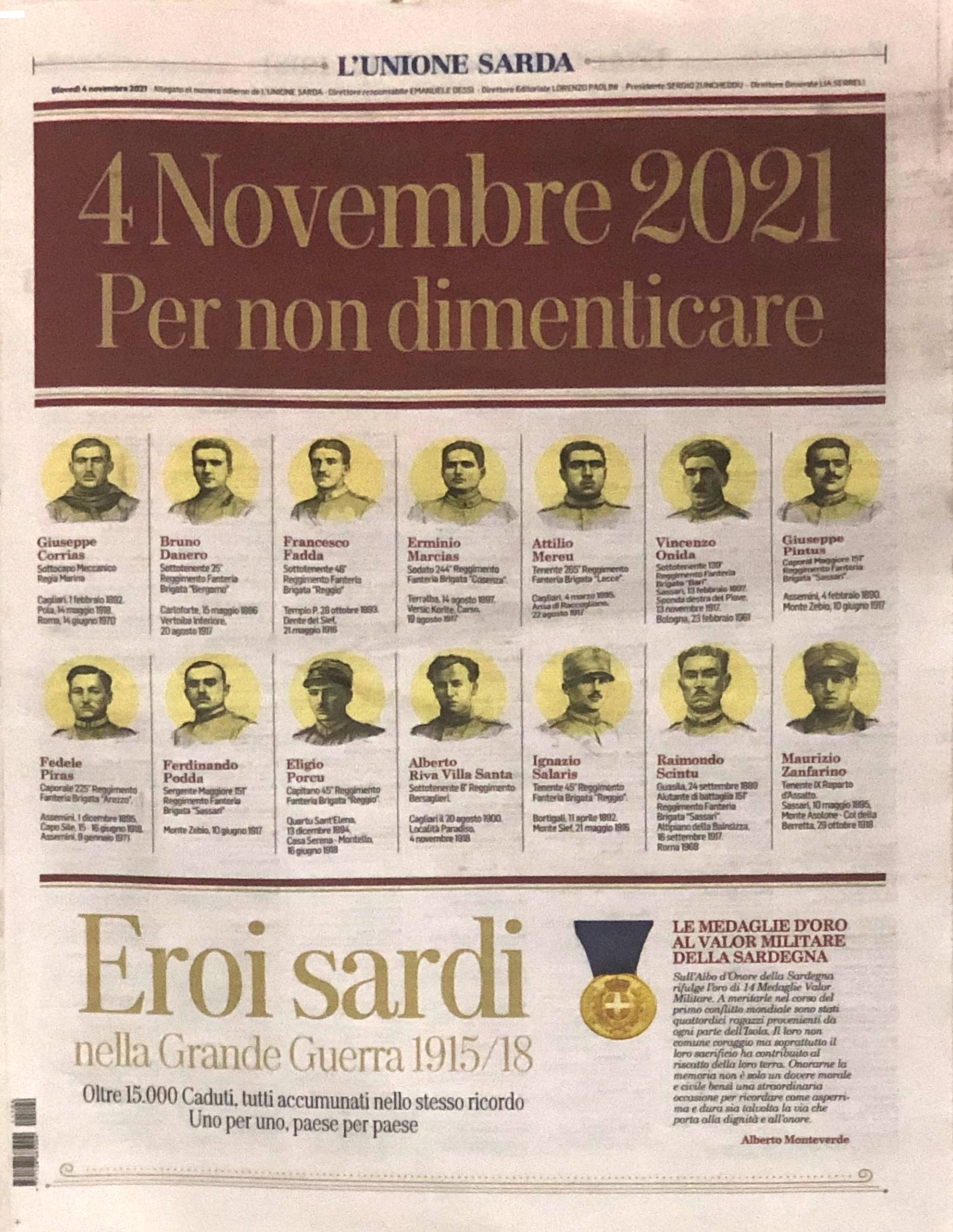 4 novembre 2021 : per non dimenticare / l’Unione Sarda