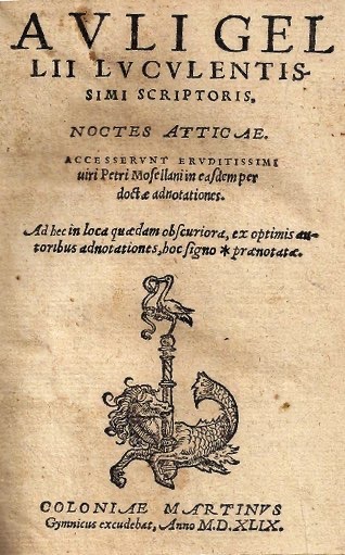 Auli Gellii luculentissimi scriptoris, Noctes Atticae. Accesserunt eruditissimi uiri Petri Mosellani in easdem perdoctae adnotationes