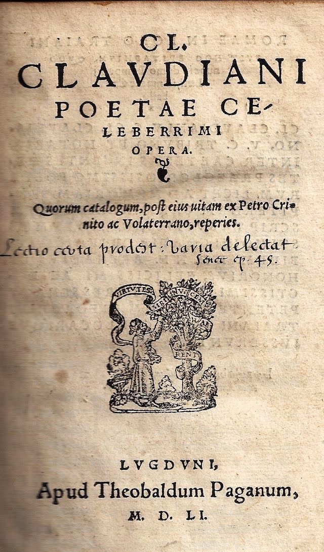 Recensisci per primo “Cl. Clavdiani Poetae Celeberrimi Opera. Quorum catalogum, post eius vitam ex Petro Crinito ac Volaterrano, reperies.”