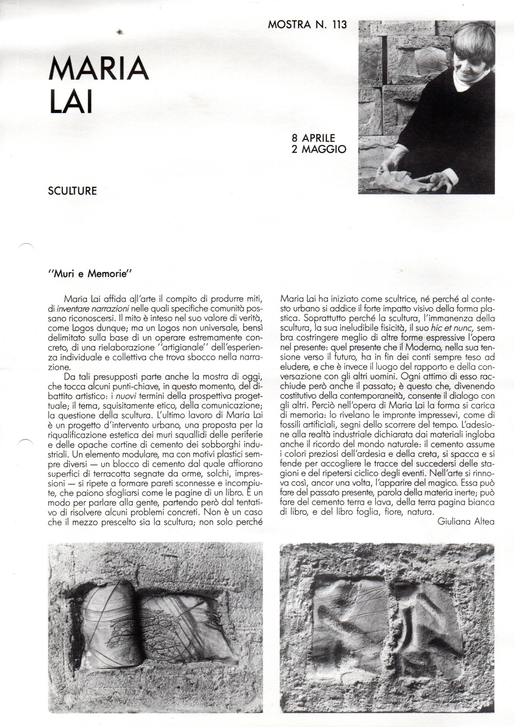 2 p. : ill. ; 22 cm. (NOTE GENERALI : Pieghevole mostra tenutasi a Cagliari, Arte Duchamp, 8 aprile – 2 maggio 1989)