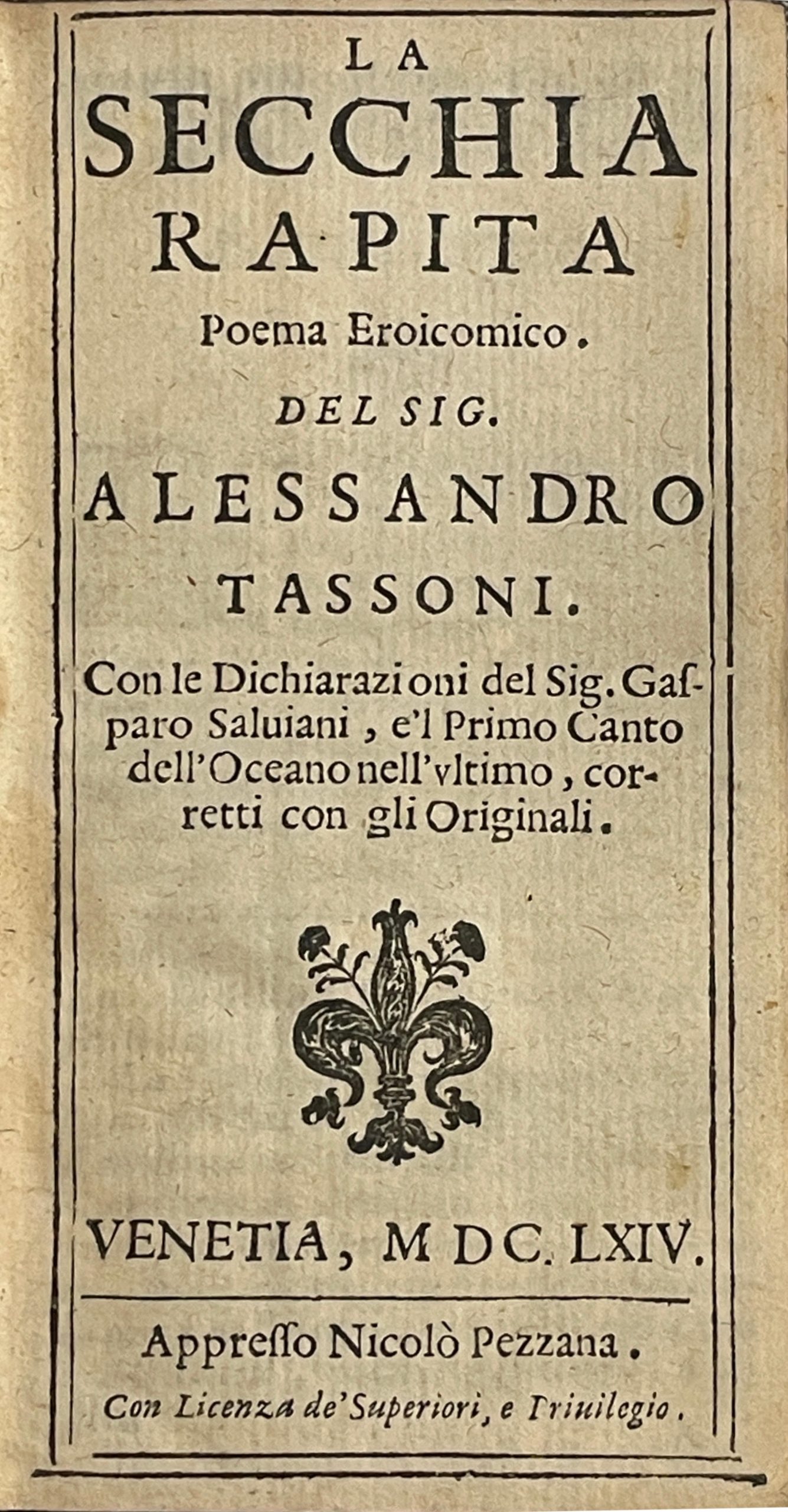 The stolen bucket, a heroic-comic poem. By Mr. Alessandro Tassoni. With the declarations of Mr. Gasparo Saluiani, and the first canto of the Ocean in the last, corrected with the originals