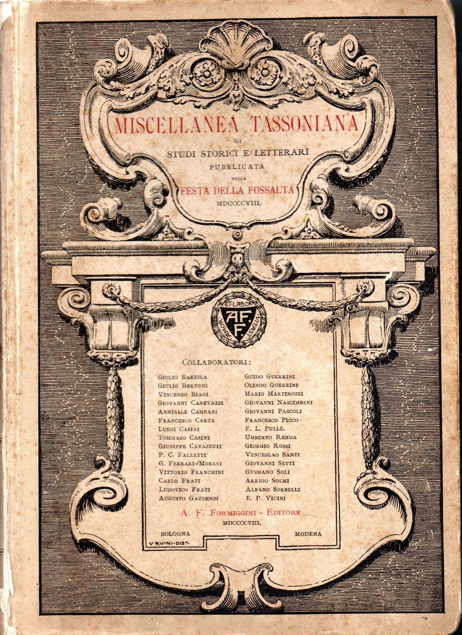 Pubblicazione : Editore, Data: | Bologna ; Modena : A. F. Formiggini, 1908 (Modena : Ferraguti e C.) |