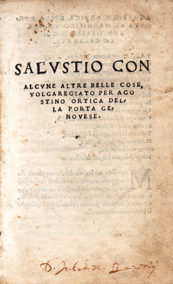 Salustio con alcune altre belle cose, volgaregiato per Agostino Ortica della Porta genouese.