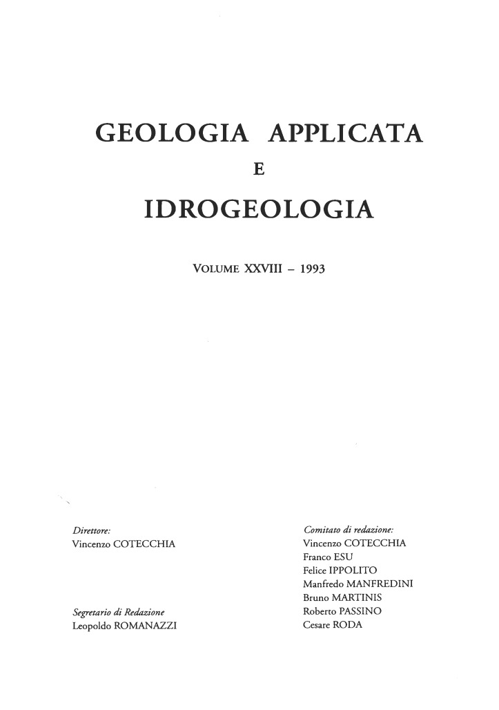 In “Geologia Applicata e Idrogeologia”, volume XXVIII, 1993. – (pp. 27-34)