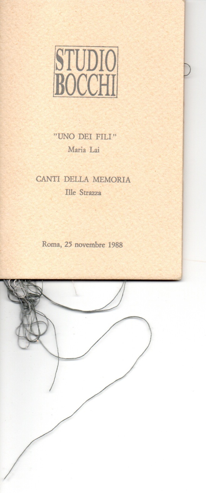 p. 12. Esemplare n. 16 di 50. Libro cucito. Carta e filo. (8 *11,8 cm)