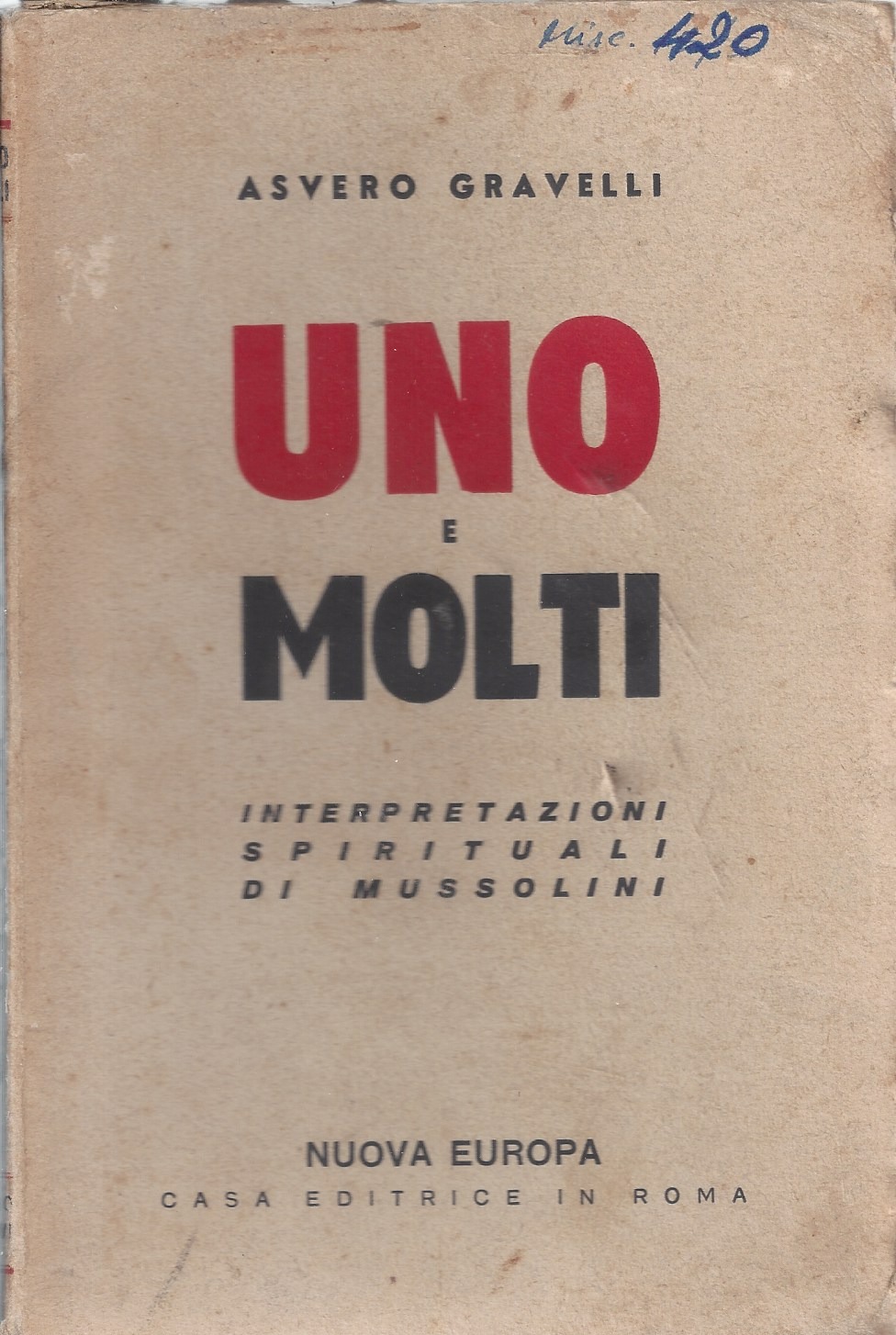 Pubblicazione : Editore, Data: Roma : Nuova Europa, stampa 1938